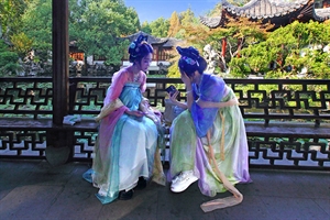 園中佳侶倚欄坐