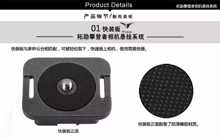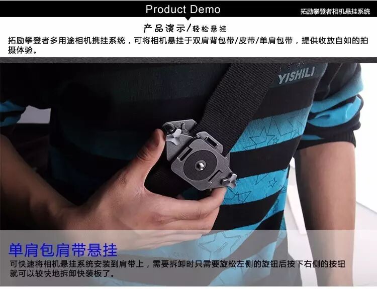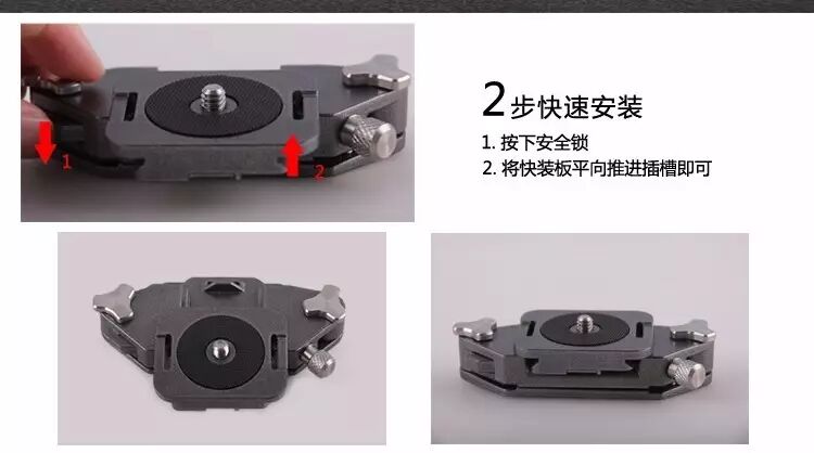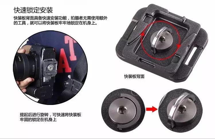 攜掛快速便利,中板和底座分離,可快速夾緊背(皮)帶,方便攜掛各類單反和微單相機。