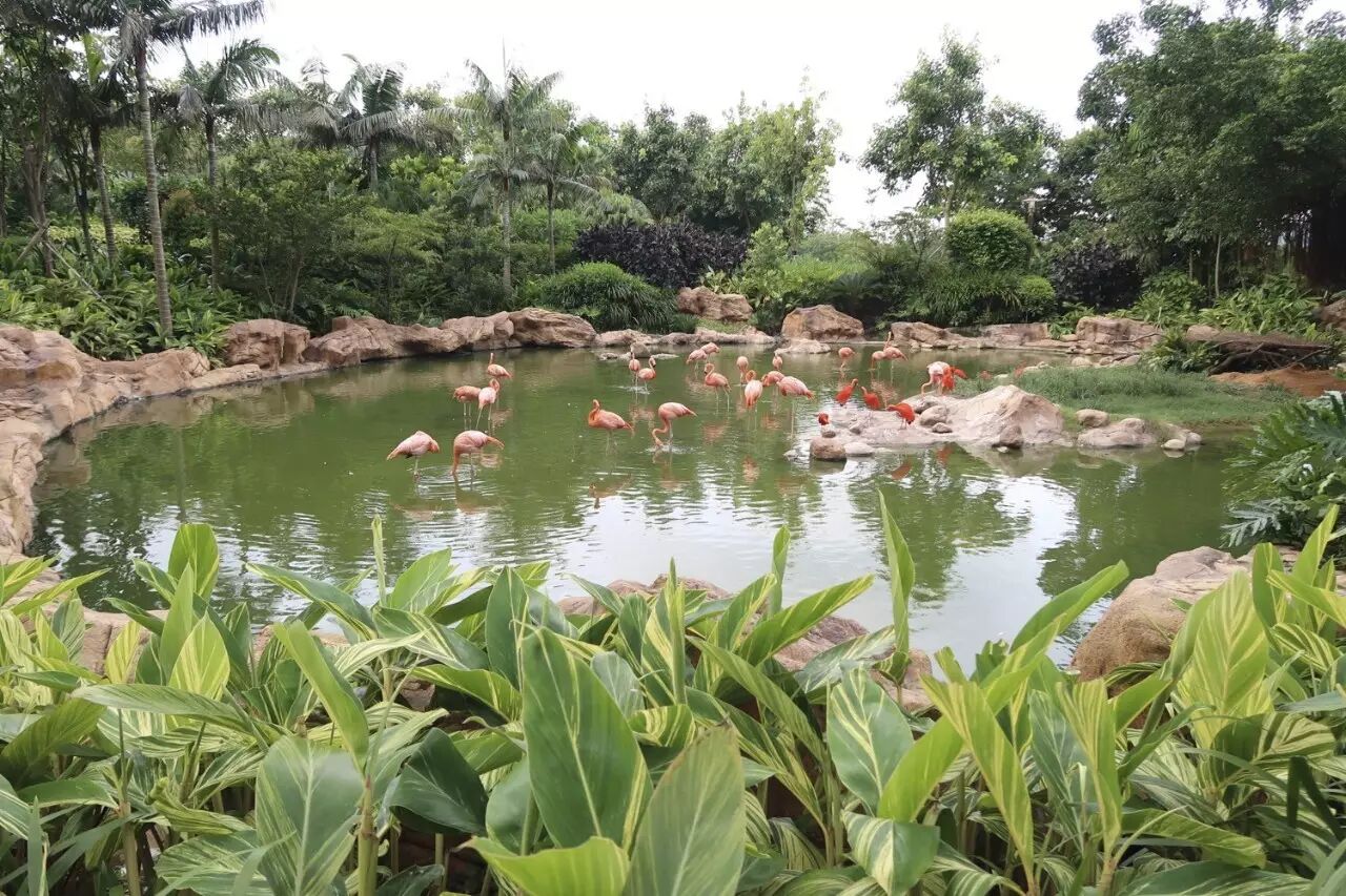 點評:畫面生動有趣地呈現了公園中火烈鳥生存的環境,前景使畫面構圖更加飽滿,環境交代得也比較完整,但火烈鳥距離較遠較小,弱化了主體的表現力,整體畫面較為平淡。