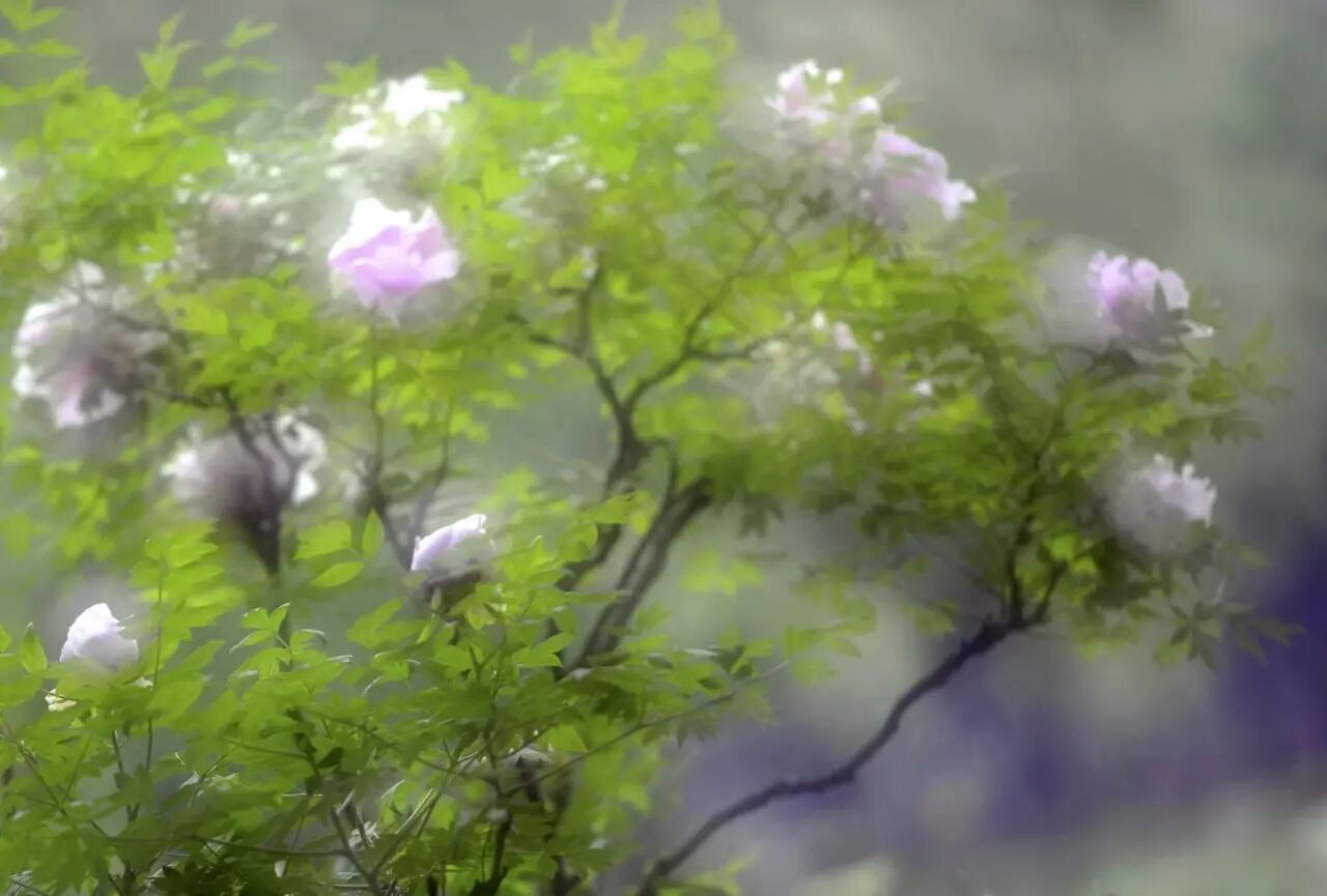 點評:霧非霧,花非花,虛實變化讓畫面產生了很強的朦朧感,淡淡的粉色點綴著新綠,給觀者以清新自然的感覺,似乎聞到了晨露的味道與花的香氣。