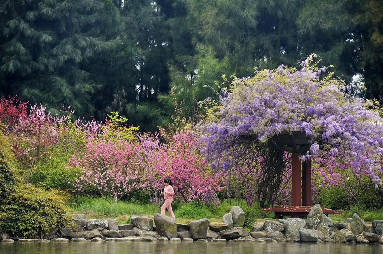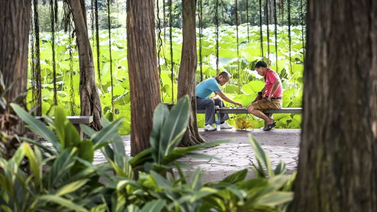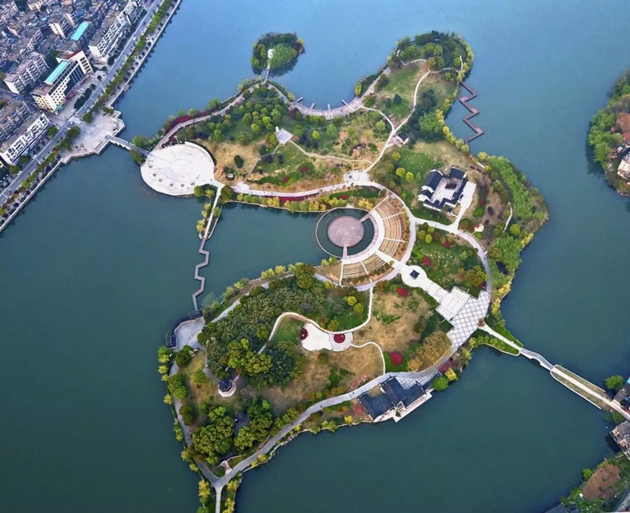 點評:作者利用無人機拍攝公園的場景,俯拍的角度更能展現景物的全貌及結構特征。打破了常規的視角,從宏觀的角度,勾畫出水鄉園林景觀特有的圖案美。