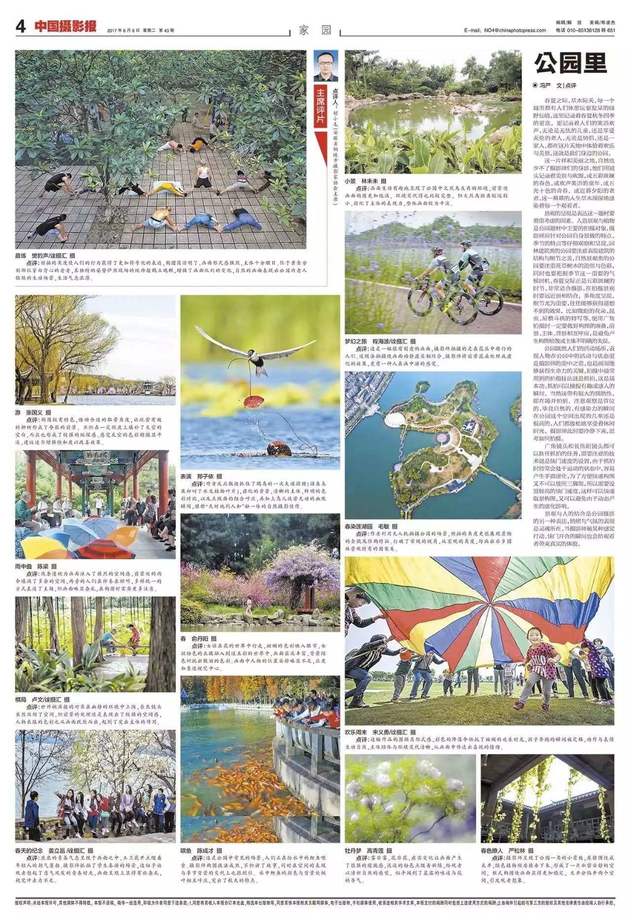 2017年6月6日,共有14幅以“公園里”為主題的作品通過公開征集在中國攝影報4版“家園”刊登。