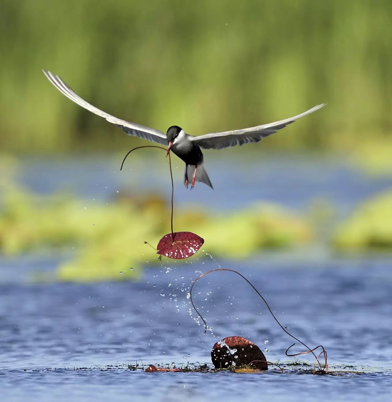 點評:作者反應敏捷抓住了鷗鳥的一次失誤捕獵(捕魚結果卻叼了水生植物葉片),虛化的背景,清晰的主體,鮮明的色彩對比,以及點線面的組合呼應,再加上鳥兒徒勞無功的幽默瞬間,堪稱“天時地利人和”融一體的自然攝影佳作。