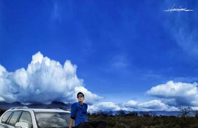 2、對比女生,男生的肢體動作和服飾相對的會遜色點,但是你可以進行思考創作,例如,男性比較陽剛的動作姿態(如下圖),利用好道具,例如墨鏡、背包、車等等。