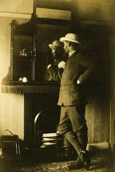 蕭伯納倚在壁爐邊利用鏡子拍攝了一張鏡中肖像。