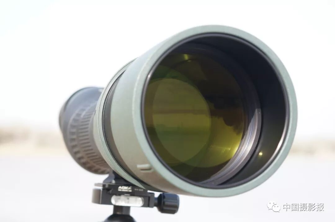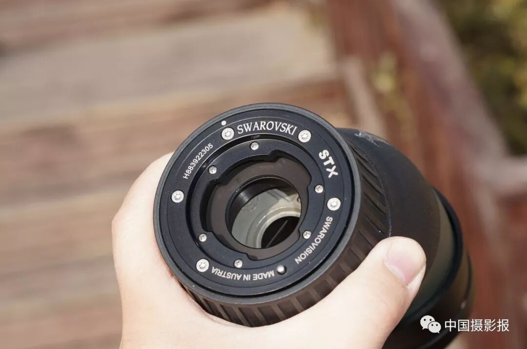 拿掉物鏡組的鏡頭蓋向里望去,95mm的“大眼睛”鍍著一層施華洛世奇光學產品特有的黃綠色鍍膜。這層鍍膜凝集了施華洛世奇光學的專利鍍膜技術,它們在最大限度保持色彩的真實和層次的豐富之外還利于清潔和保護鏡片。在專利鍍膜技術的加持之下,配合物鏡中含氟化物HD鏡片,將色散控制在了極低的水平。