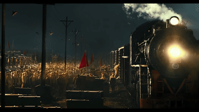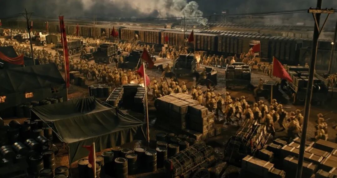 電影中還有一個場景:在中朝邊境的火車站站臺上,工作人員看到第九兵團戰士身著薄薄的南方冬衣,紛紛把身上的棉衣圍巾皮靴和軍帽脫下來緊急遞給車上的戰士們。