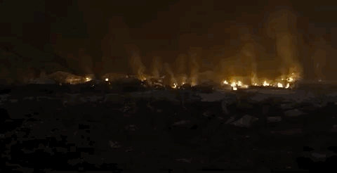 1950年12月,在長津湖戰役初期,中國人民志愿軍第27軍80師戰士們正在與美軍激烈夜戰,遠處美軍帳篷被擊中。 張崇岫 攝