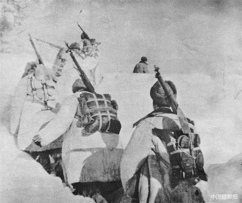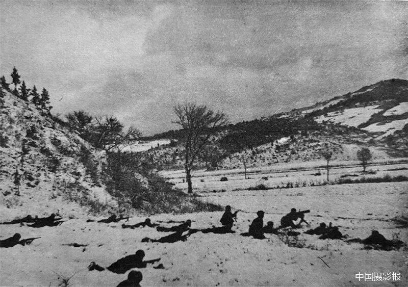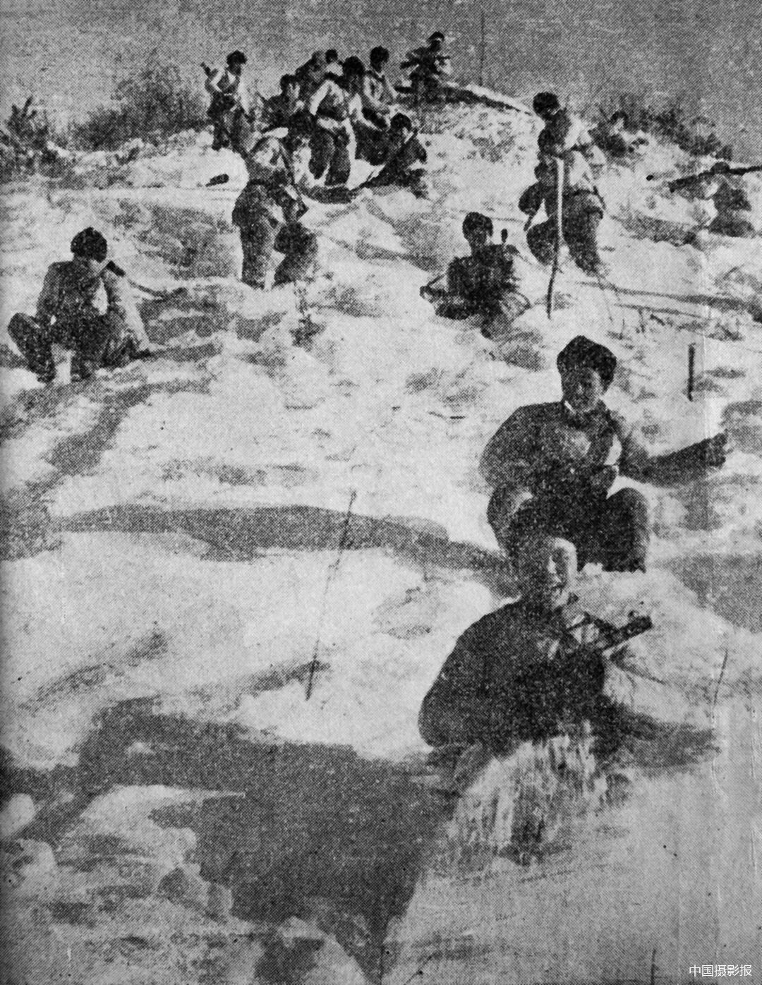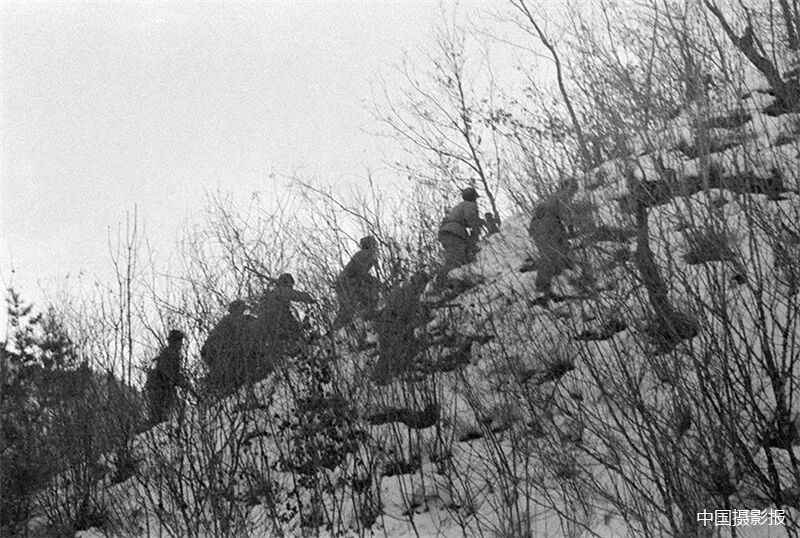 勇士們冒著敵人的炮火,踏著深雪猛撲死鷹嶺。張崇岫 攝