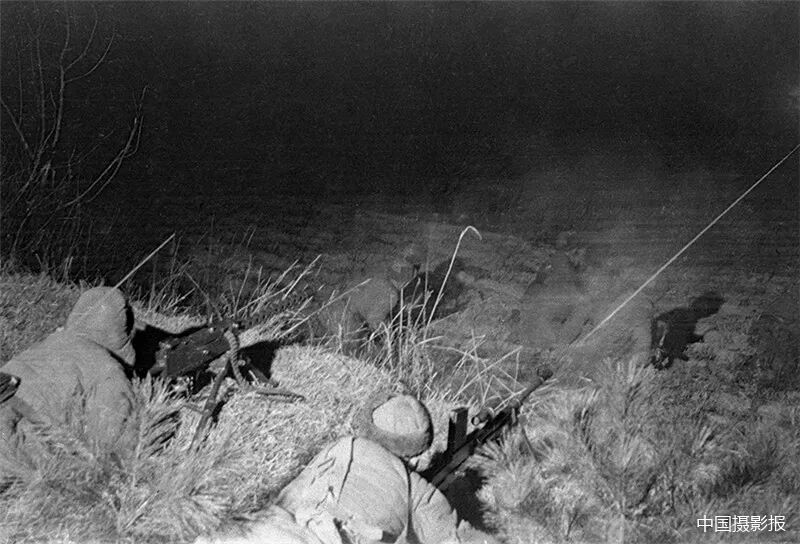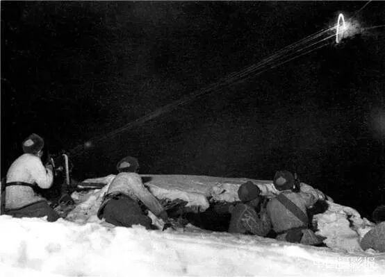 1950年12月,在長津湖戰役初期,中國人民志愿軍第27軍80師戰士們正在與美軍激烈夜戰。 張崇岫 攝