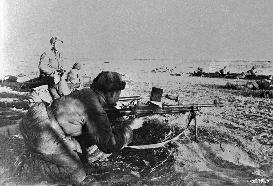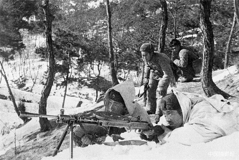 1950年12月,在長津湖戰役中,中國人民志愿軍第27軍80師機槍手掩護戰士們向元山咸興港運動。張崇岫 攝