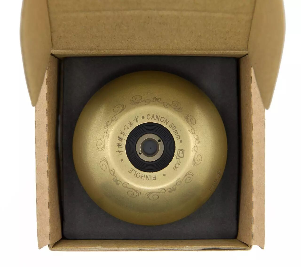 內部無鏡片、無馬達。采用小孔成像原理。由黃銅構成半封閉體,激光在薄金屬片打孔作為前端,與你手中的數碼相機形成全新的針孔數碼相機。