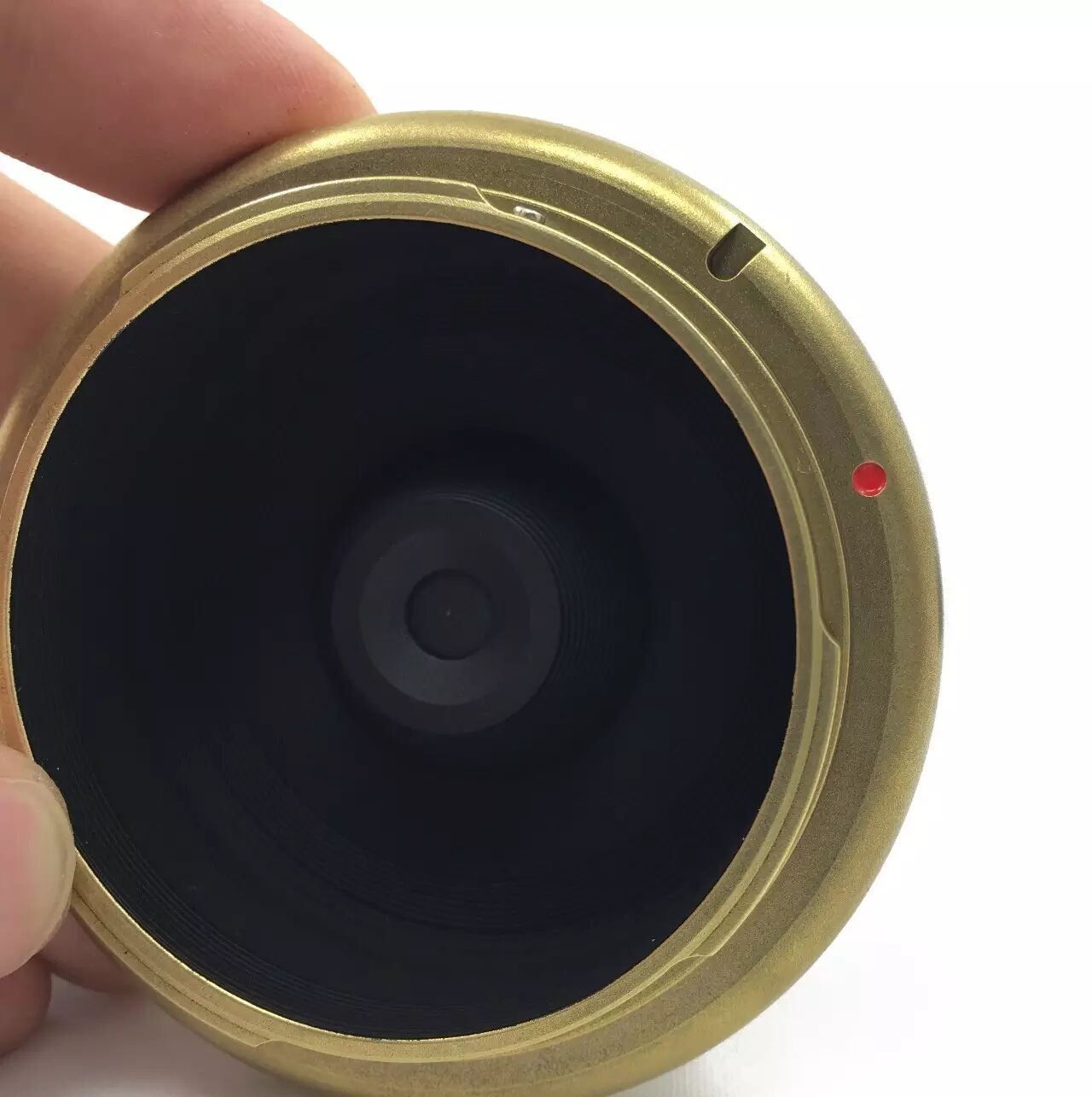 鏡頭邊緣的紅點方便操作者對準機身插入并旋轉鎖緊鏡頭。