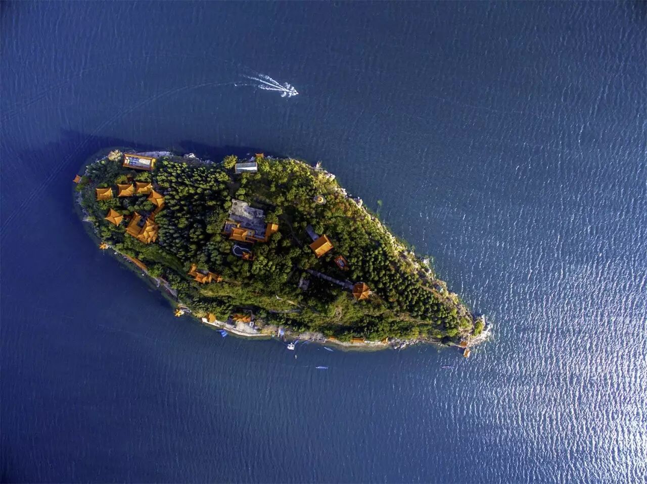 點評:自從無人機航拍普及之后,“水中孤島”的題材豐富起來,這也難怪,這樣的拍攝角度在之前是不太可能完成的。一座翠玉般的島嶼,在湛藍的水面中猶如一葉綠舟,神秘而安詳。