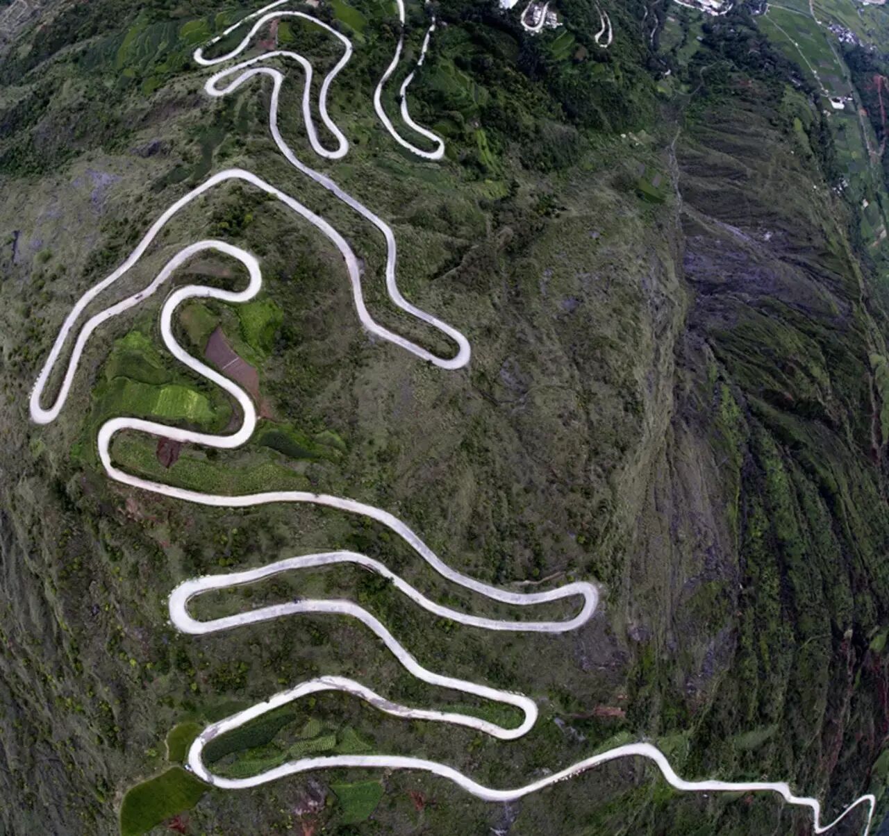點評:盤山公路從空中看來就像是在大地上刻畫的臉譜,隱秘而又偉大。這是人類與自然共同創造的杰作,是屬于這個星球獨有的印記。航拍給予我們上帝的啟示。
