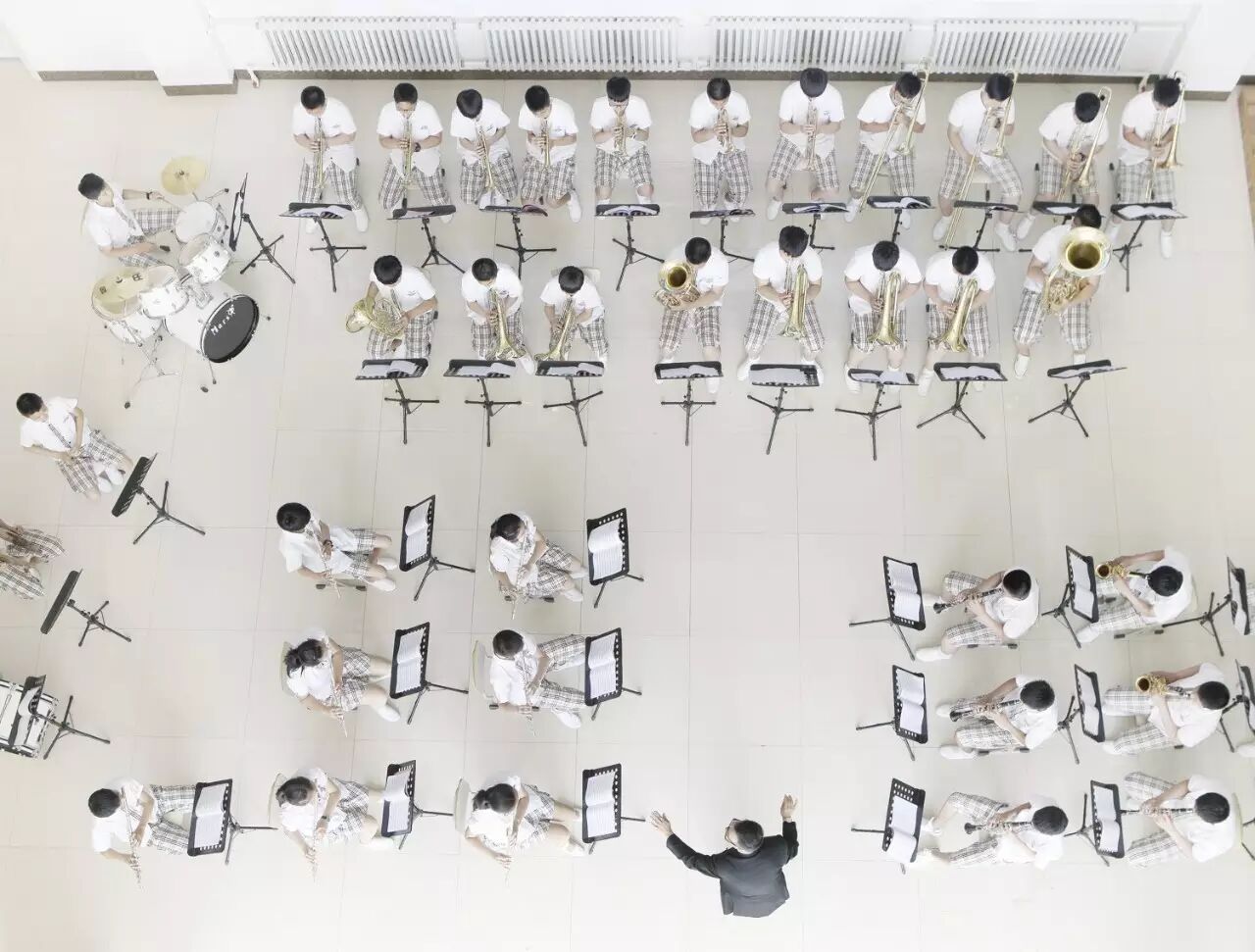 點評:航拍帶來的不僅是視角的變化,還可以簡潔畫面,點、線、面形成了樂章上的音符,黑色的“點”在淺色的背景上襯托出符號般的律動,指揮的動作和手勢又恰如其分地強調了拍攝時機的“決定性”。