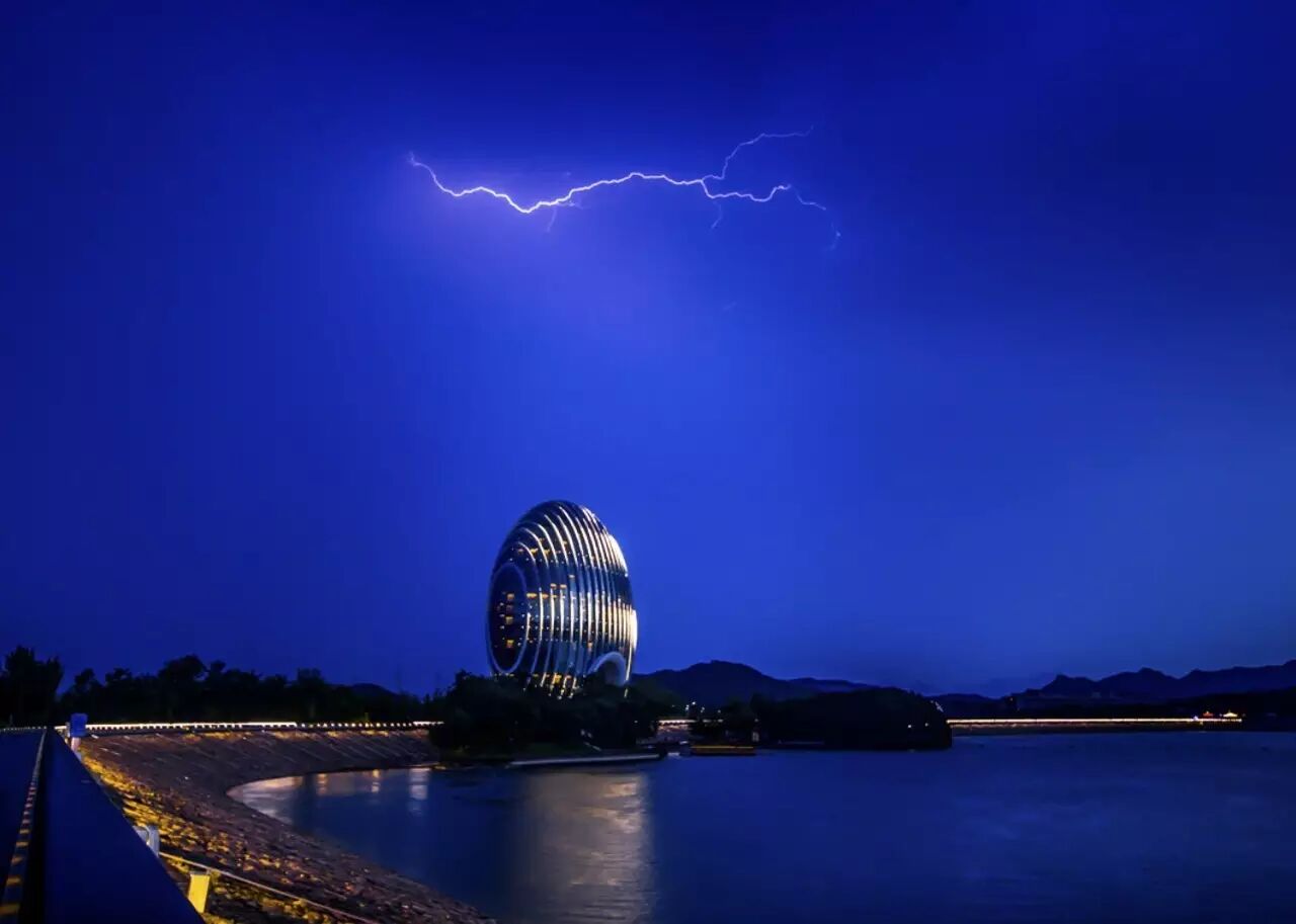 點評:在這幅以藍色調為主的畫面中,人工光的點綴無疑生動和豐富了畫面的色彩,并勾勒出建筑和地面生動的形態和結構,而更為生動的是閃電的出現,為畫面帶來了幾絲科幻意味。