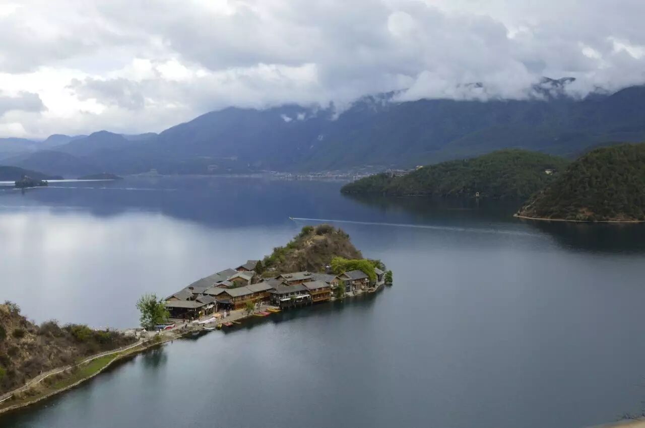 點評:這幅畫面中,相對平靜的水面因為遠距離的拍攝而看上去猶如一面水墨鏡,其將天空和地面景觀倒影其中,此種虛幻的點綴極好地襯托了湖面之上的島嶼和建筑,使之看上去更加鮮活生動了。