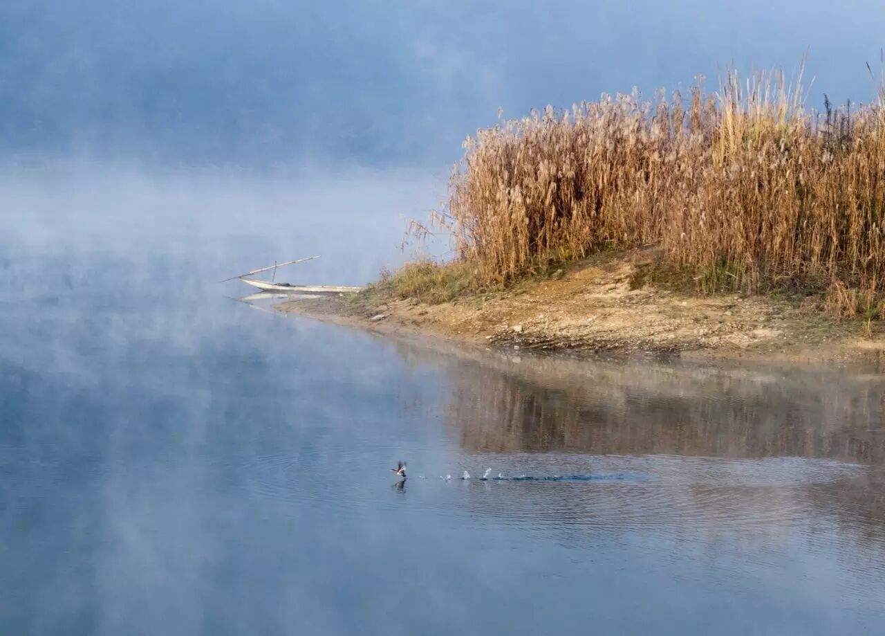 點評:攝影師以生動的鏡頭捕捉下了水鳥飛躍于水面之上的精彩瞬間,散發著生命的生機和野趣,而水面上白色的薄霧增加了畫面的神秘和靜謐氣息,愈加襯托出由水鳥之動所帶來的意境和趣味。
