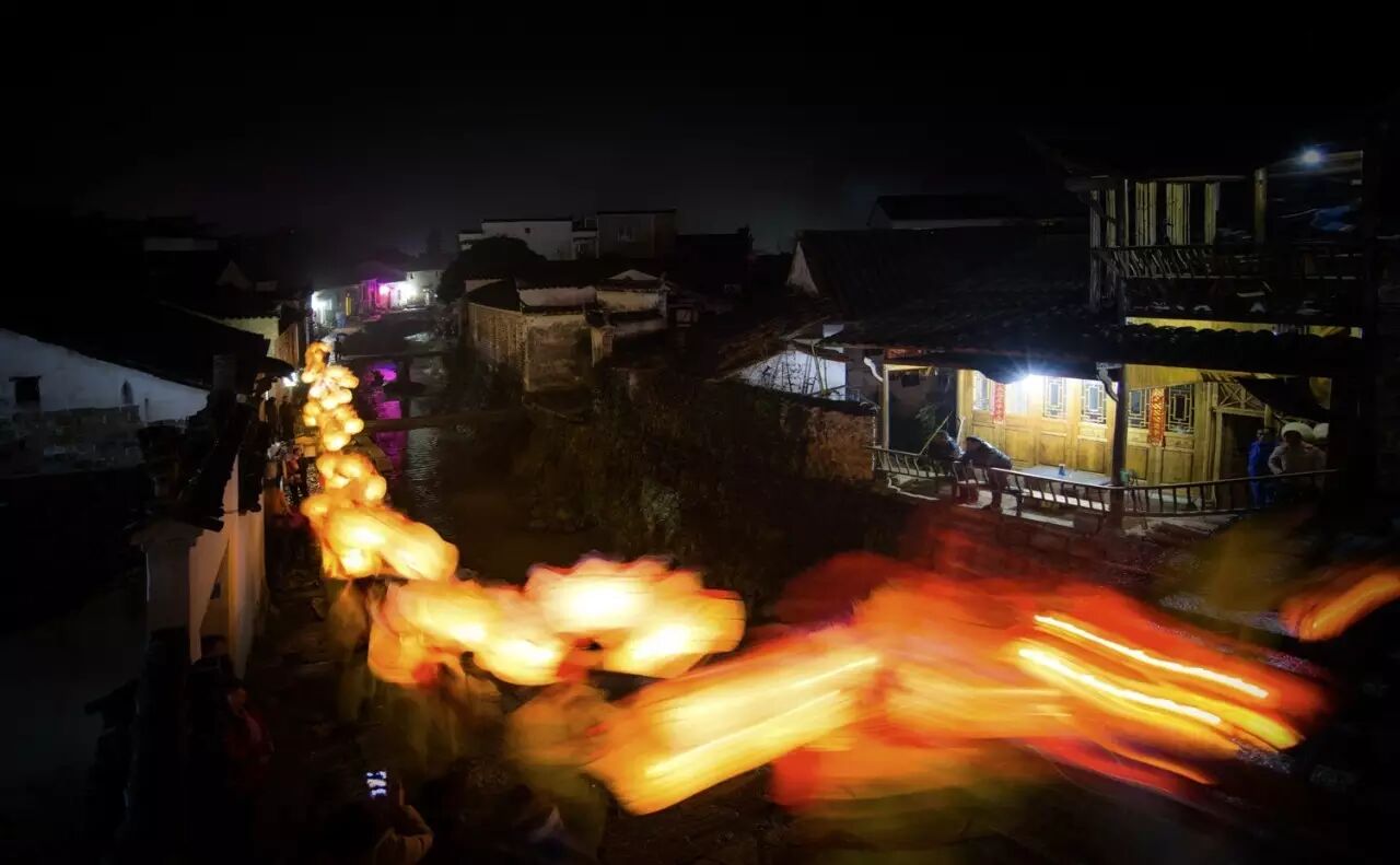 點評:攝影師通過慢速快門拍攝,將街道中行走的人群和燈籠作了動態虛化處理,看上去猶如一條流動的彩帶,非常生動地渲染了春節的熱鬧和歡快氛圍,而相對靜止的建筑和其間的人物,則使得畫面的動勢氛圍更加強烈了。