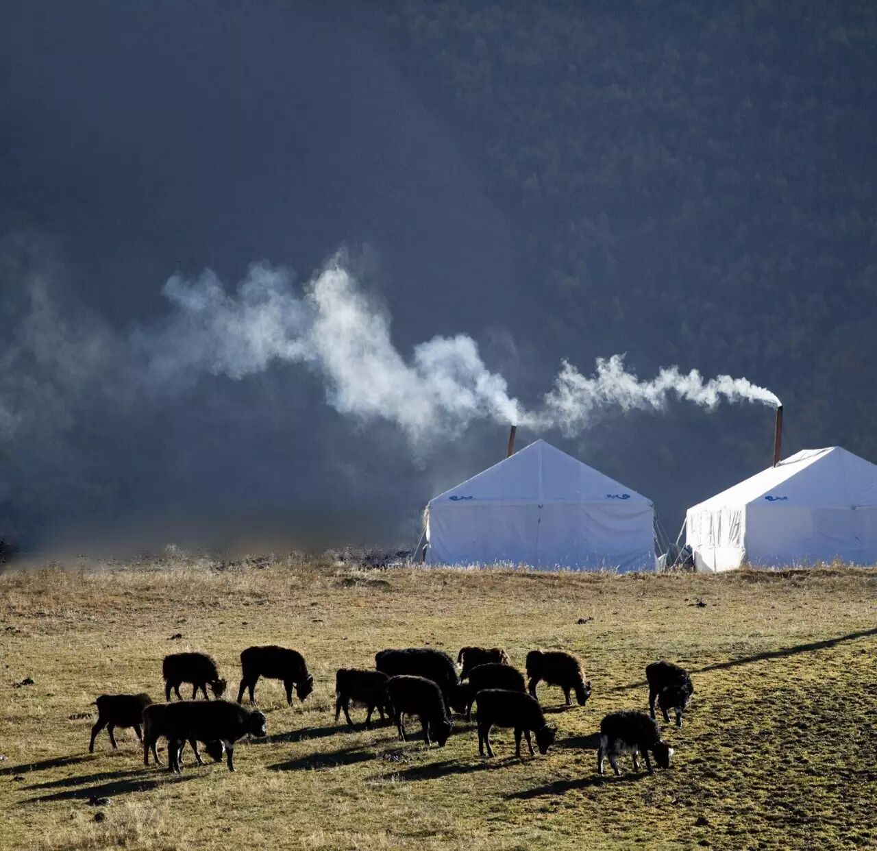 點評:富有質感的光線在攝影師的有效控制下,以鮮明的側光賦予景物以生動的光影和立體效果,深暗的冷色背景為畫面營造出生動的明暗對比和空間氛圍,而炊煙的點綴則為畫面帶來更加濃厚的生活氣息。