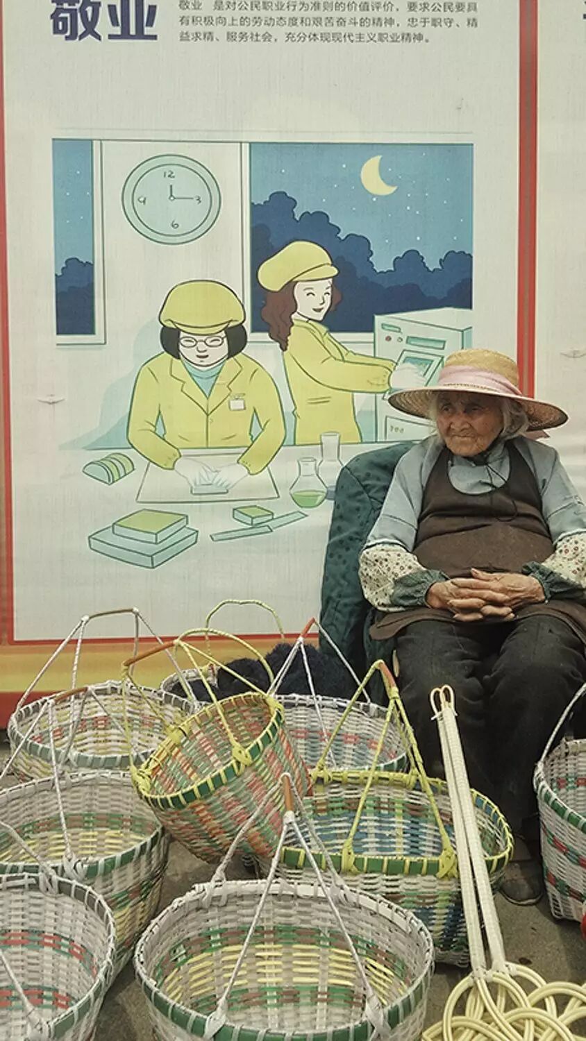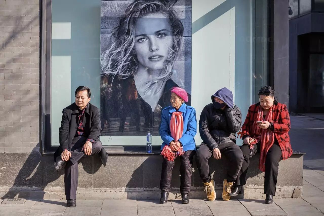 點評:畫面展示了時尚與平常的對比,廣告與實景所構成的兩種不同生活空間,構成了鮮明對比。似乎有點不食人間煙火的商業廣告下,廣大老百姓過的卻是平常日子,樸實的畫面同樣體現出一定的思想性。