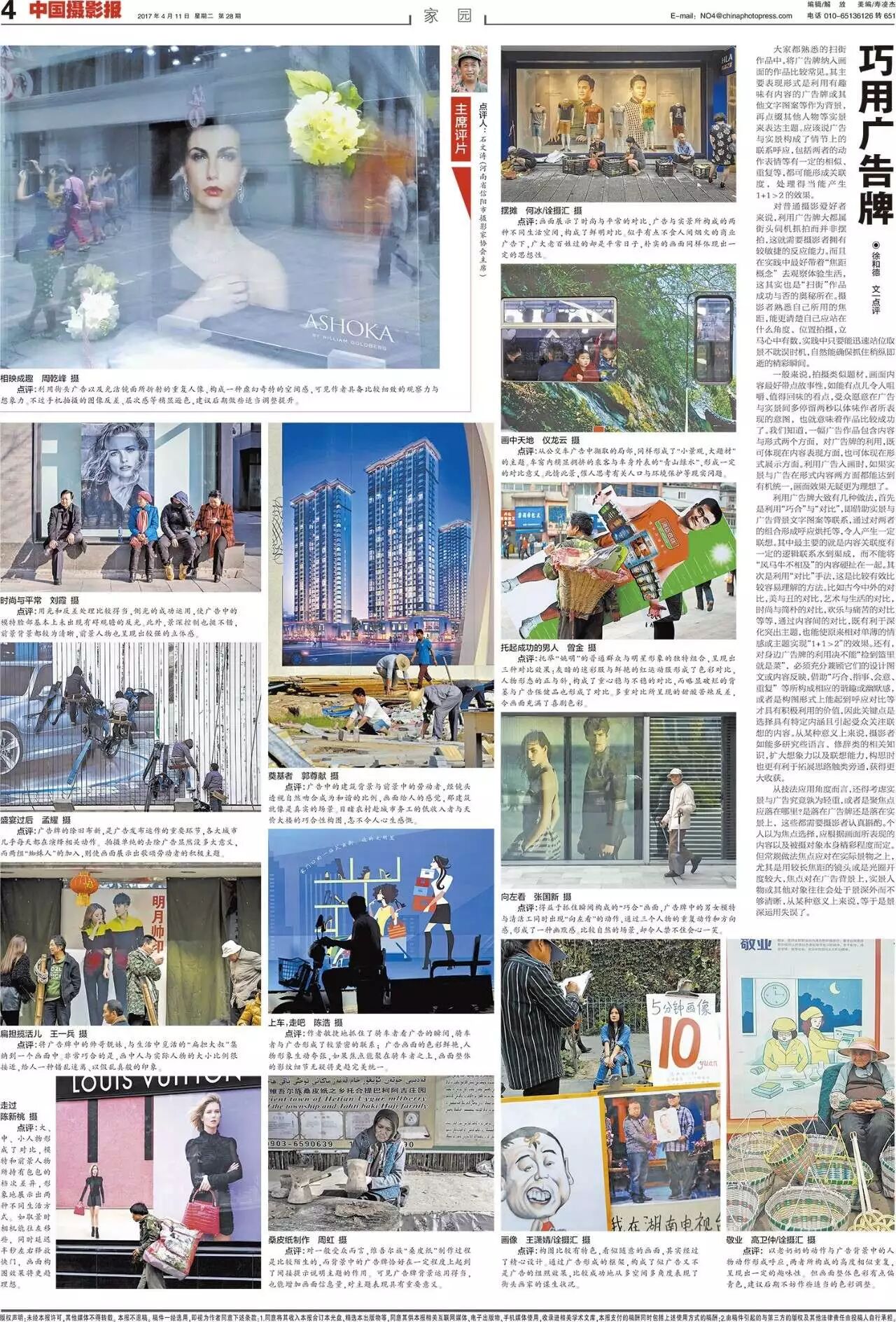 2017年4月11日,共有14幅以“巧用廣告牌”為主題的作品通過公開征集在中國攝影報4版“家園”刊登。