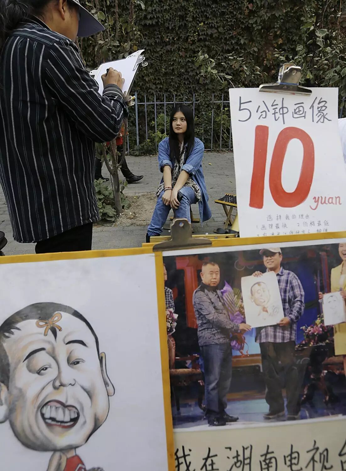 點評:構圖比較有特色,看似隨意的畫面,其實經過了精心設計。通過廣告形成的框架,構成了似廣告又不是廣告的組照效果,比較成功地從多空間多角度表現了街頭畫家的謀生狀況。