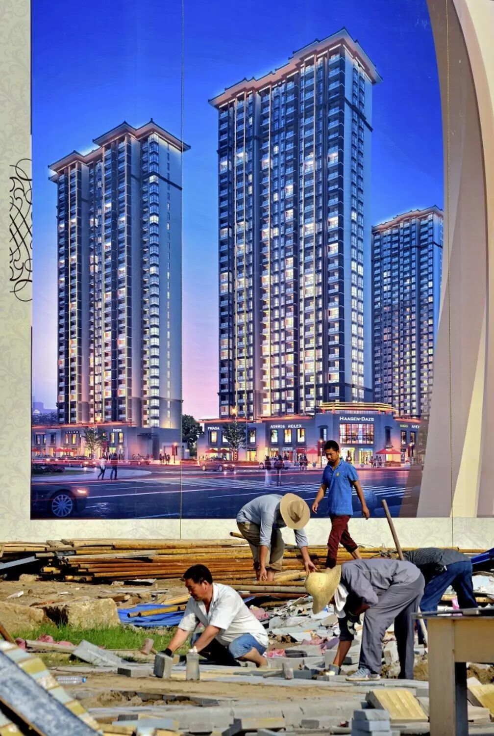 點評:廣告中的建筑背景與前景中的勞動者,經鏡頭透視自然吻合成為和諧的比例,畫面給人的感覺,那建筑就像是真實的場景。目睹農村赴城市務工的低收入者與天價大樓的巧合性構圖,怎不令人心生感慨。