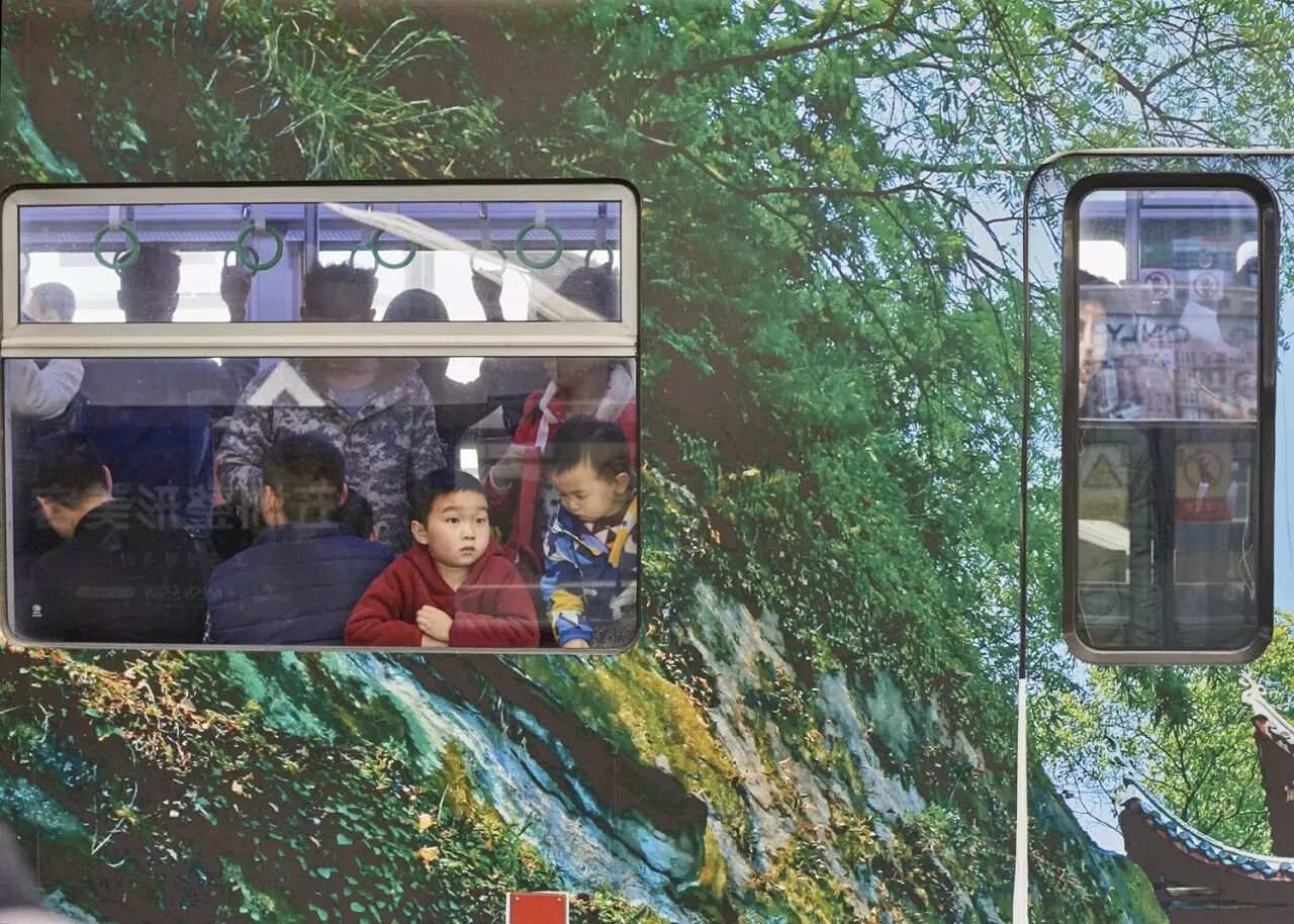 點評:從公交車廣告中擷取的局部,同樣形成了“小景觀,大題材”的主題。車窗內稍顯擁擠的乘客與車身外表的“青山綠水”,形成一定的對比意義。此情此景,催人思考有關人口與環境保護等現實問題。
