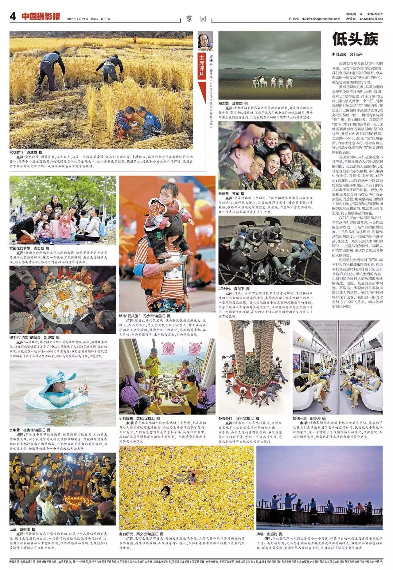 2017年4月21日,共有14幅以“低頭族”為主題的作品通過公開征集在中國攝影報4版“家園”刊登。
