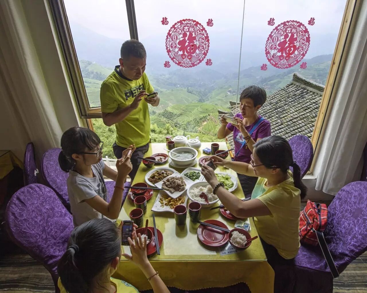 點評:這是現實生活中特別常見的一個場景,也是我們每個人都曾有過的生活體驗。手機為生活分享提供了便利,面對美食,人們首先想到的是記錄和分享。從這張照片中,我們既能感受到物質生活水平的提高,也能感受到精神生活的需求和滿足。