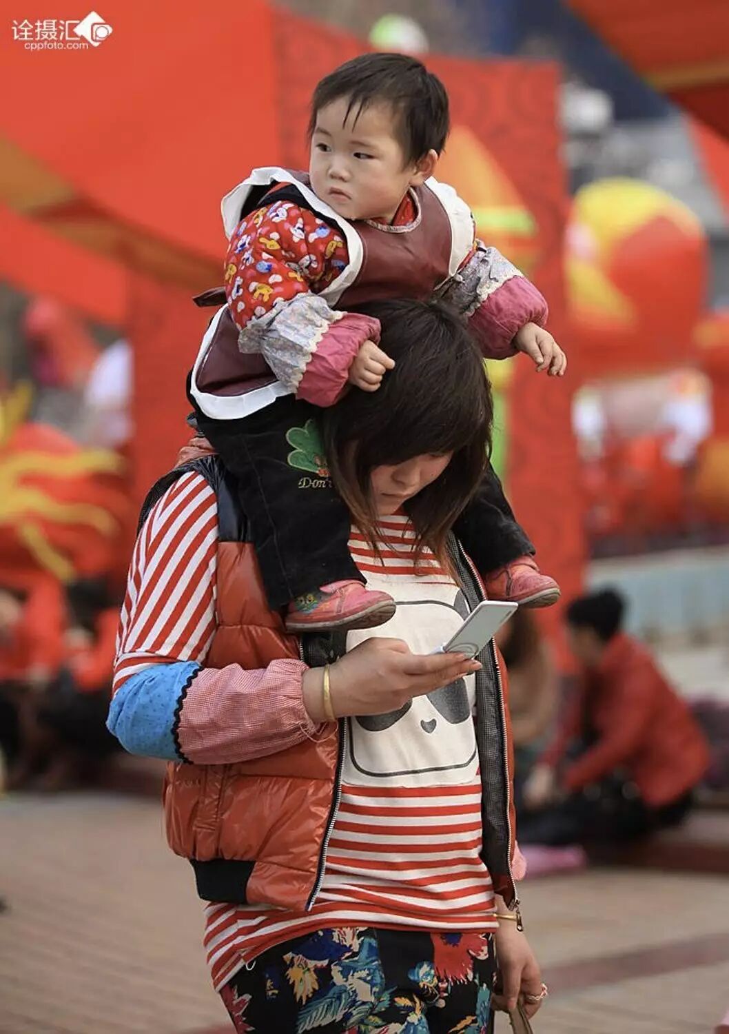 點評:隨著信息化的發展,低頭族隊伍越來越龐大,在路上、在公交車上,隨處可見低頭玩手機的人。作者在街頭抓拍到了這個瞬間,母親全然不顧孩子,依然玩著手機,讓人后怕。畫面構圖簡單,主體較為突出,人物神態自然。