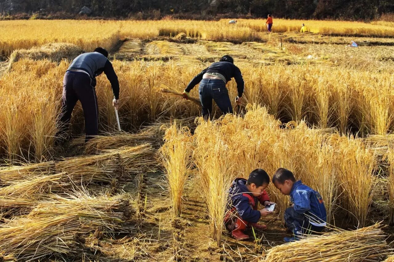 點評:金黃時節,碩果累累,五谷飄香,這是一個收獲的季節。大人們彎腰駝背,手持鐮刀,忙碌的身影代表著傳統的生活勞作;而兩個小朋友則饒有興趣地沉浸在手機的樂趣之中。整個畫面色調溫馨,構圖簡練,對比和呼應關系作用得當。呈現出當下社會發展變化中的一成不變和瞬息萬變的矛盾碰撞。