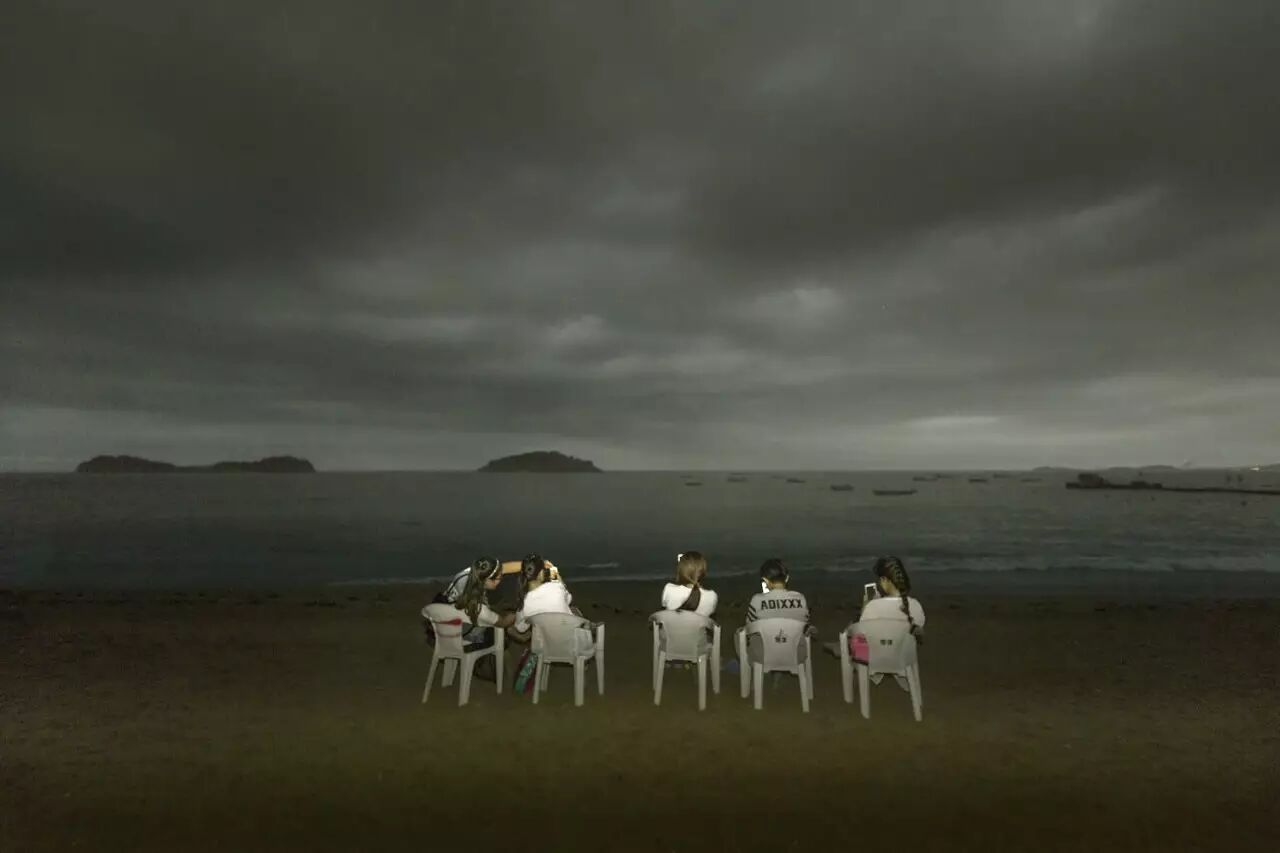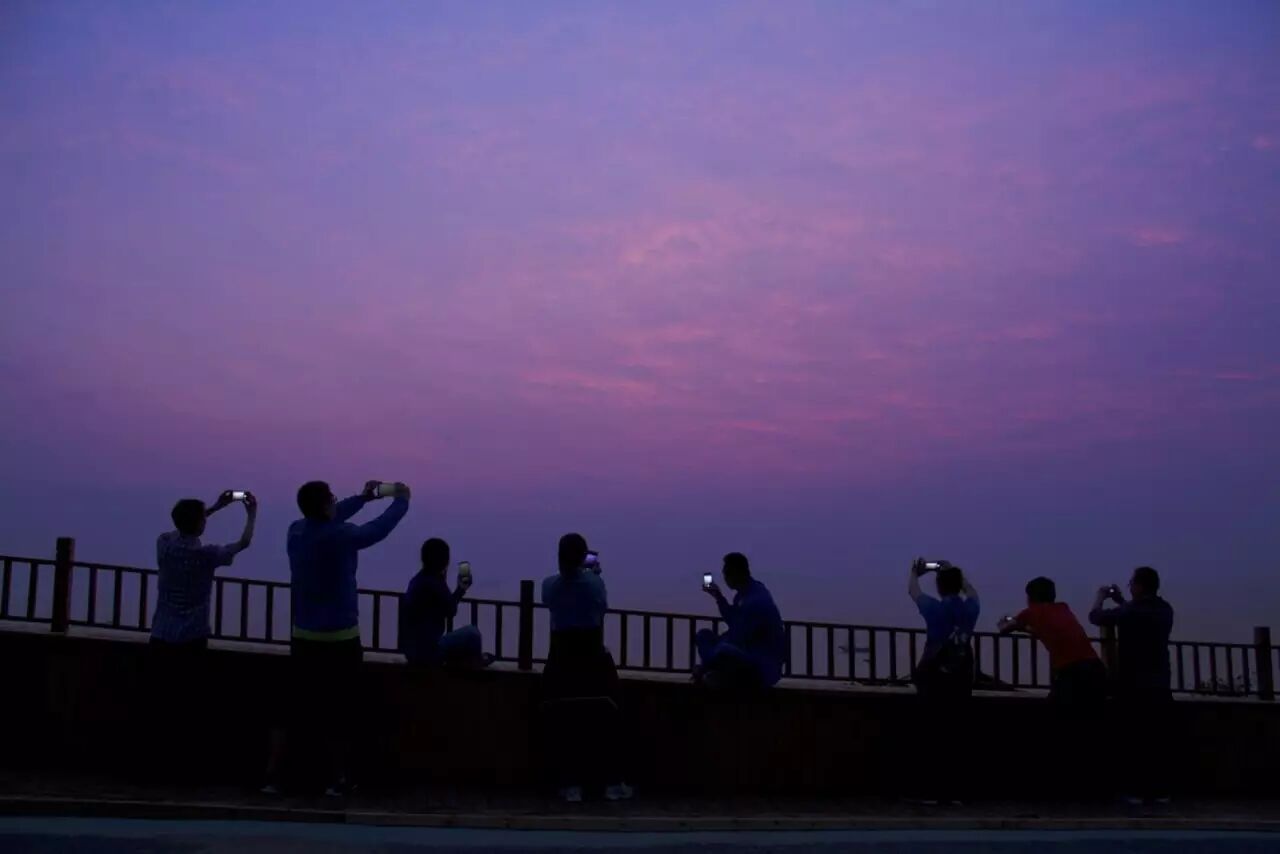 點評:手機的普及深入人們生活的每一個角落。等待日出的人們更愿意用手機記錄下這一美好的時刻,尤其是手機屏發出的光構成畫面的趣味點。不過畫面顯得有些松散,還有裁剪空間。如果能將人處理成剪影,突出表現手機似乎會更好看。