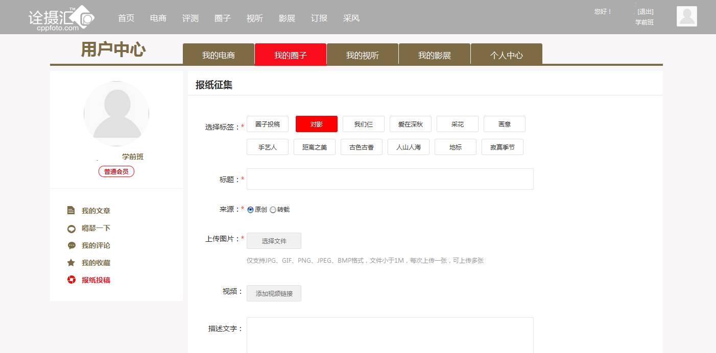 成為『詮攝匯』官方網站注冊會員后,參與中國攝影報“版面征稿”,并填寫相關信息。